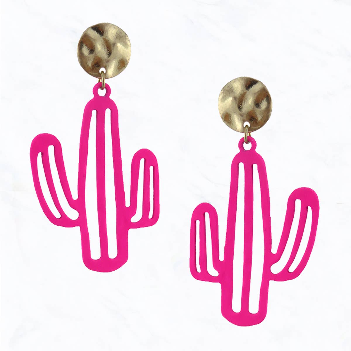 Wholesale Prickly Pear Cactus - Metallic Leather Embossed Earrings