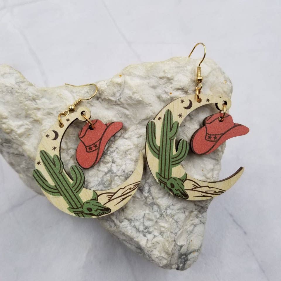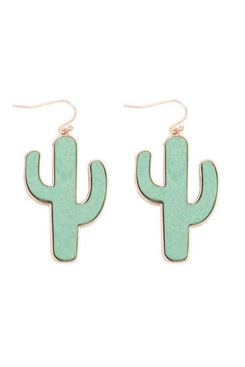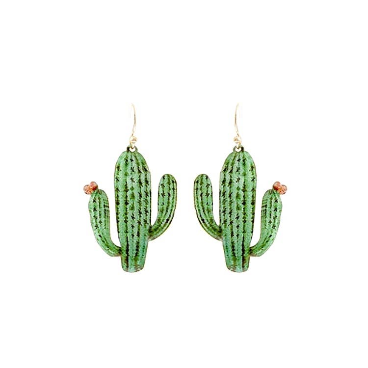 OneWild - Wholesale Dangle Earrings - Prickly Pear Cactus - Metallic Leather Embossed Earrings9