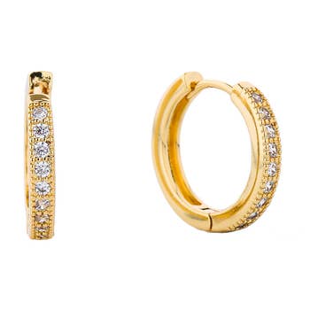 Micro Pave Hoop Earrings • This listing is for our Pave Hoop(s) only. Featuring dainty hinged hoop huggies with pave CZ detail. Perfect for every day and layering. Shown styled with our Harriet Stud and Hoop. Photo is a close up for details please refer to our measurements for size • Material: 18K Gold over 925 Sterling Silver. • Measurement: 14mm outer diameter; 11mm inner diameter • Nickel and lead free. • All our jewelry is packaged in signature MAIVE jewelry pouches. If you would like multiple items from your order packaged separately please let us know. Please email/message us if you have any questions about our products, styling, or recommendations. We are happy to help! © 2025 MAIVE