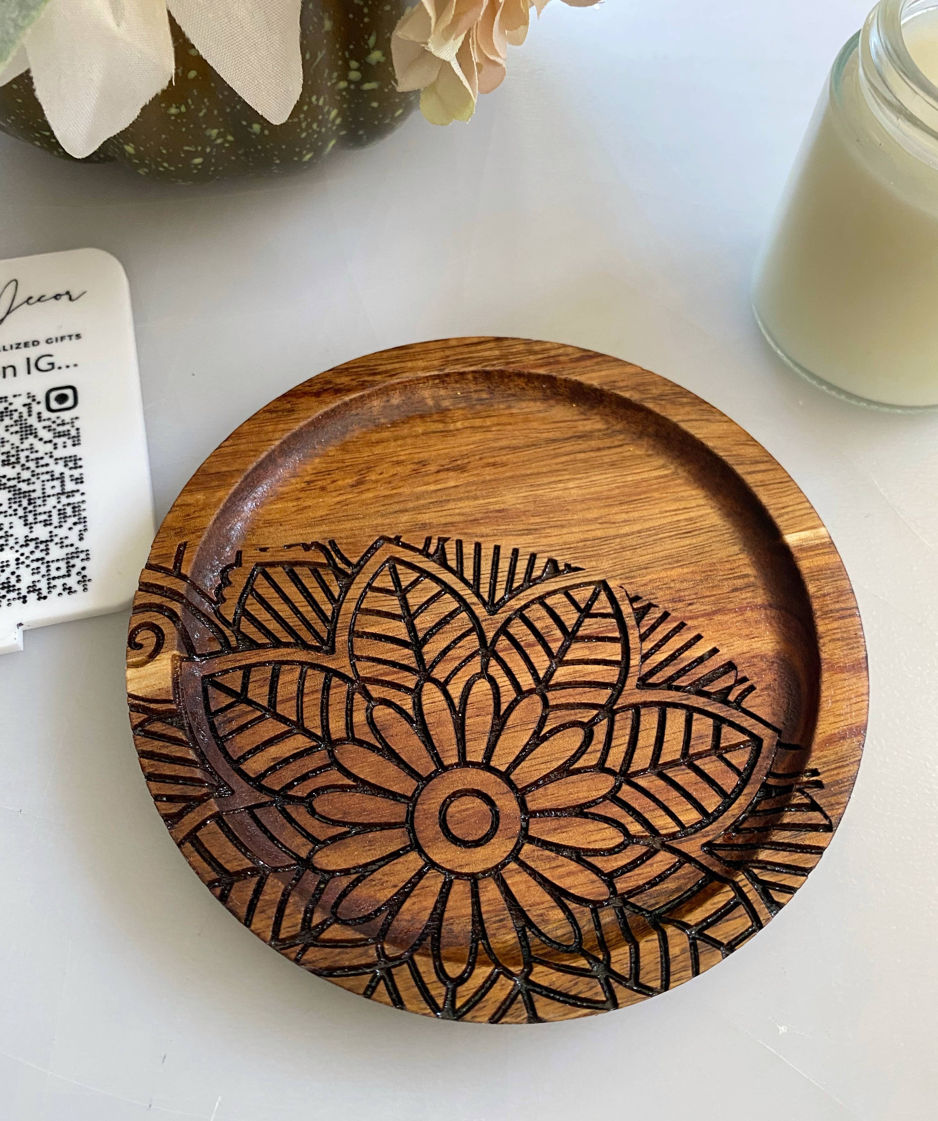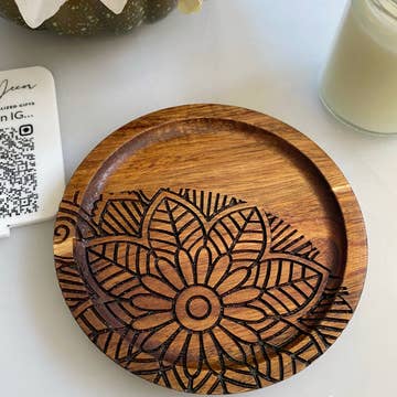 Succulent 4" round alder wood coaster with cork feet.