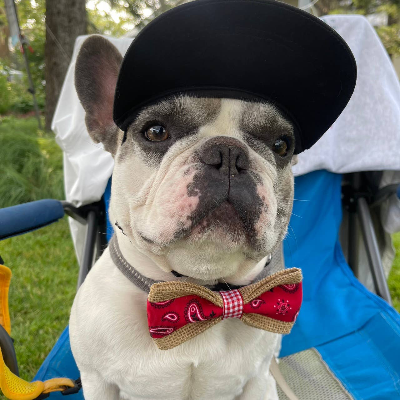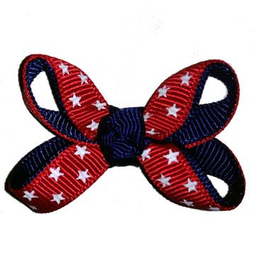This bow tie is American flag themed and red, white and blue. It is one of our best sellers. Perfect for any time of the year, especially Memorial Day, 4th of July, Labor Day and any occasion to show dog patriotism. Each bow tie measures 5" and has an adjustable black velcro strap on the back to easily fit around collars and harnesses. *This is a bow tie design we try to keep in stock. ALL BOW TIES SHIP IN A CLEAR PLASTIC ENVELOPE.