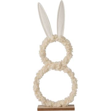 The Rainbow Gnome Bunny is a decorative plush figurine that adds a unique, whimsical touch to home décor. The bunny is made of furry fabric dyed in soft rainbow colors and has a round fabric nose. The bunny features two white fabric-wrapped bunny ears. The bunny can be displayed on a bookshelf, desk, or tabletop and makes a thoughtful Spring, Easter, or Pride-themed gift. Measures 7" high by 5" wide.