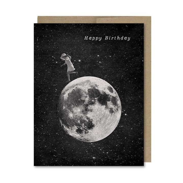 Original 'thank you' vintage collage art greeting card and envelope. Cat & moon. Perfect thank you! Blank inside. Dimensions: 4.25" x 5.5" Material: ink on paper (100lb. Uncoated cream stock) and stylish brown bag envelope. Greeting card and envelope come in a protective sleeve.