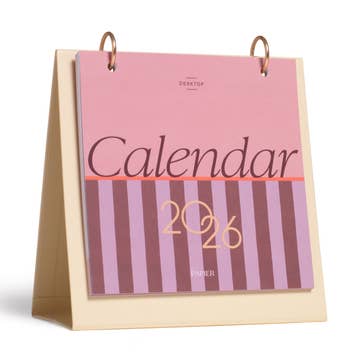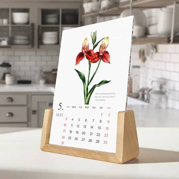 Taking it back a few decades where color and funk ruled with this psychedelic monthly 2026 Desk Calendar, including a full and new moon schedule. The desk calendar is made from thick, felt stock and is paired with a sturdy wooden mini easel. Desk Calendars are packaged in a clear plastic box measuring 4 7/8" x 13/16" x 6 5/8". The plastic box is made from 100% post-consumer recycled materials and is recyclable with a recycle symbol on the box. Please note: You may see some images that show 2023-2025 calendars. The 2026 calendar is up-to-date.