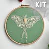 The Luna Moth is a gorgeous example of how elegant these creatures can be. Moths have a bad rap as being a scary butterfly, but it is undeserved - and I promise these insects won't eat the clothes in your closet. This embroidery kit embraces muted colours and the pattern is inspired by antique lace patterns. This kit makes a 6-inch embroidered piece. This kit uses only basic stitches and comes with a pre-printed pattern. It is classified as beginner friendly. The kit contains everything you need to embrace the embroidery obsession: - Full set of paper instructions - 2 full DMC floss skeins - 2 John James embroidery needles - Pattern on Stick and Stitch Stabilizer (simply stick it onto the fabric!) - Two additional mini stick and stitch projects - 8" x 8" Kona cotton - 8" x 8" backing cotton - Patterned fabric for backing - Elbesee beechwood embroidery hoop Fell in love and want to order lots of this kit? Interested in a large-scale order? Send us a message!