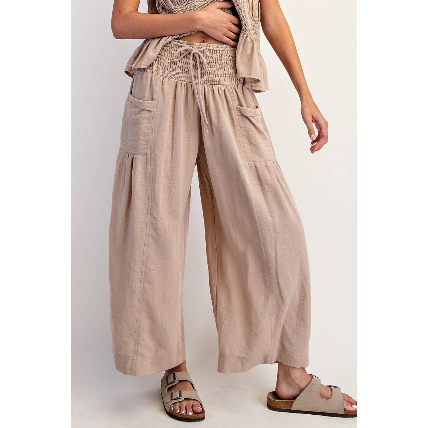 SKU: SP7105-A Made in China Aesthetic: Bohemian and Casual Care Instructions: Hand wash Fabric: 100% COTTON Fit: Contemporary Occasion Theme: Everyday Occasion: Everyday Pant Length: Ankle Pant Style: Wide Leg Rise Style: High Season: Spring/Summer