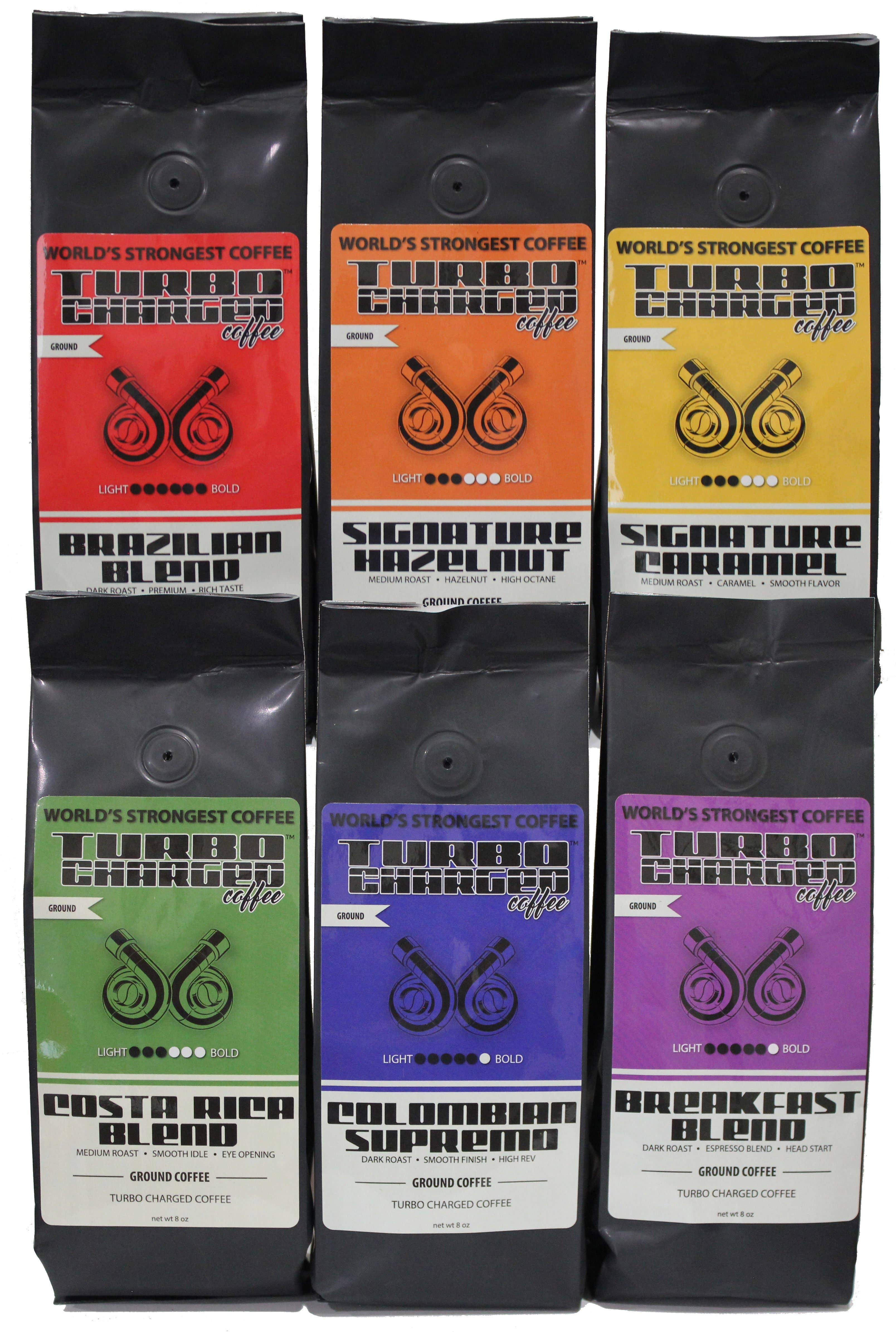 8 different blends and flavors for a total of 4 lbs of delicious coffee. Including: city roast/Colombian supremo/Costa rica blend/french roast/chicory/vanilla creme/Texas pecan/creme brulee. Freshly roasted and ground so you do not get stale coffee. Flavor locked and sealed to keep the coffee fresh. All of our coffee is certified kosher and free of dairy, gluten, calories, carbs, allergens, and guilt. Pack of 8.