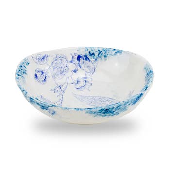 A tile pattern in a Mediterranean-inspired mix of blue and white invites good times to flow for everyone gathered at the table. Wavy lines of saturated color dance across the surface in painterly strokes, creating an expression of abundant joy. Part of the Porto collection of dinnerware and table linens from Heirloom by Danica. • SIZE: DIA3.87in, 2 oz • MATERIAL CONTENT: 100% Porcelain • CARE INSTRUCTIONS: Dishwasher & microwave safe