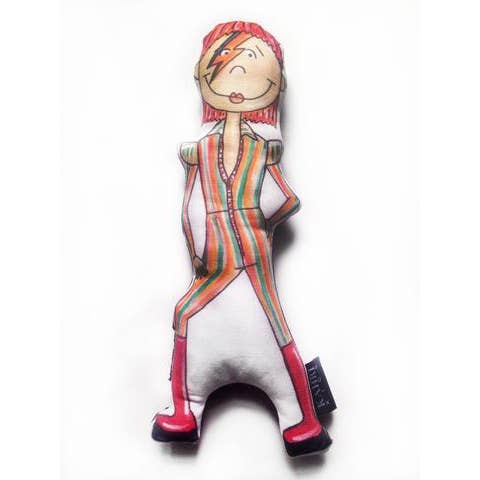 Blast off with Rocket Man, Ziggy Stardust, and Mr. Mercury as we start an otherworldly expedition. The kids these days don’t know Radio Ga Ga from Go Gos, so make sure you’re in good company with these Rock ‘n’ Roll wonders. Set of 5 wooden nesting dolls that fit into one another. Each box opens up to reveal a star-studded dressing room! Dolls included: * David Bowie * Stevie Wonder * Elton John * Freddie Mercury of Queen * Prince Largest doll measures 5.5" x 2.75" x 2.75" This is not a toy, and not intended for children under the age of 13.