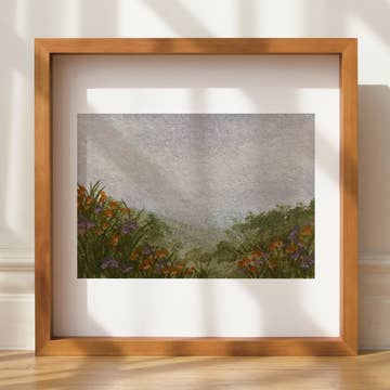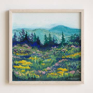Gicleé fine art print on cotton paper I took a trip directly after college graduation with my best friends from high school. It was the fruition of a long time dream I had to travel the world with these girls, explore new places, and celebrate our introduction to post-grad life. We took a bus ride across the country side and stopped to take in this beautiful view. I was overcome by the beauty of the mountains and the water and the flowers. I felt so much awe and wonder for God’s creation. And was so thankful for the opportunity to share that moment with my friends.
