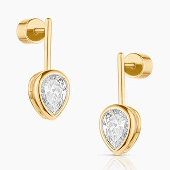 Classic, minimal, and endlessly versatile. These sleek huggies were designed to be the “second skin” earring you never take off. Huggies come in two sizes. Pick the size that’s perfect for you! Product Details Available in 14kt gold plated brass or Rhodium plated brass Stones are white cz and measure 8.0mm x 6.0mm each Snap Hinge Closure Sold as a pair Size & Fit Model is 5' 10.5" with 31.5" bust, and 25" waist Product Care: METAL: Use a soft cloth to gently wipe clean, then remove any remaining impurities with mild diluted soap. Rinse with warm water and dry thoroughly before storing in the provided jewelry pouch. Do not use abrasive cleaners, steamers or ultrasonic machines. GEMSTONE: Avoid contact with perfumes, hairsprays or other chemicals. Clean with a moistened cloth. Do not use chemical jewelry cleaners.