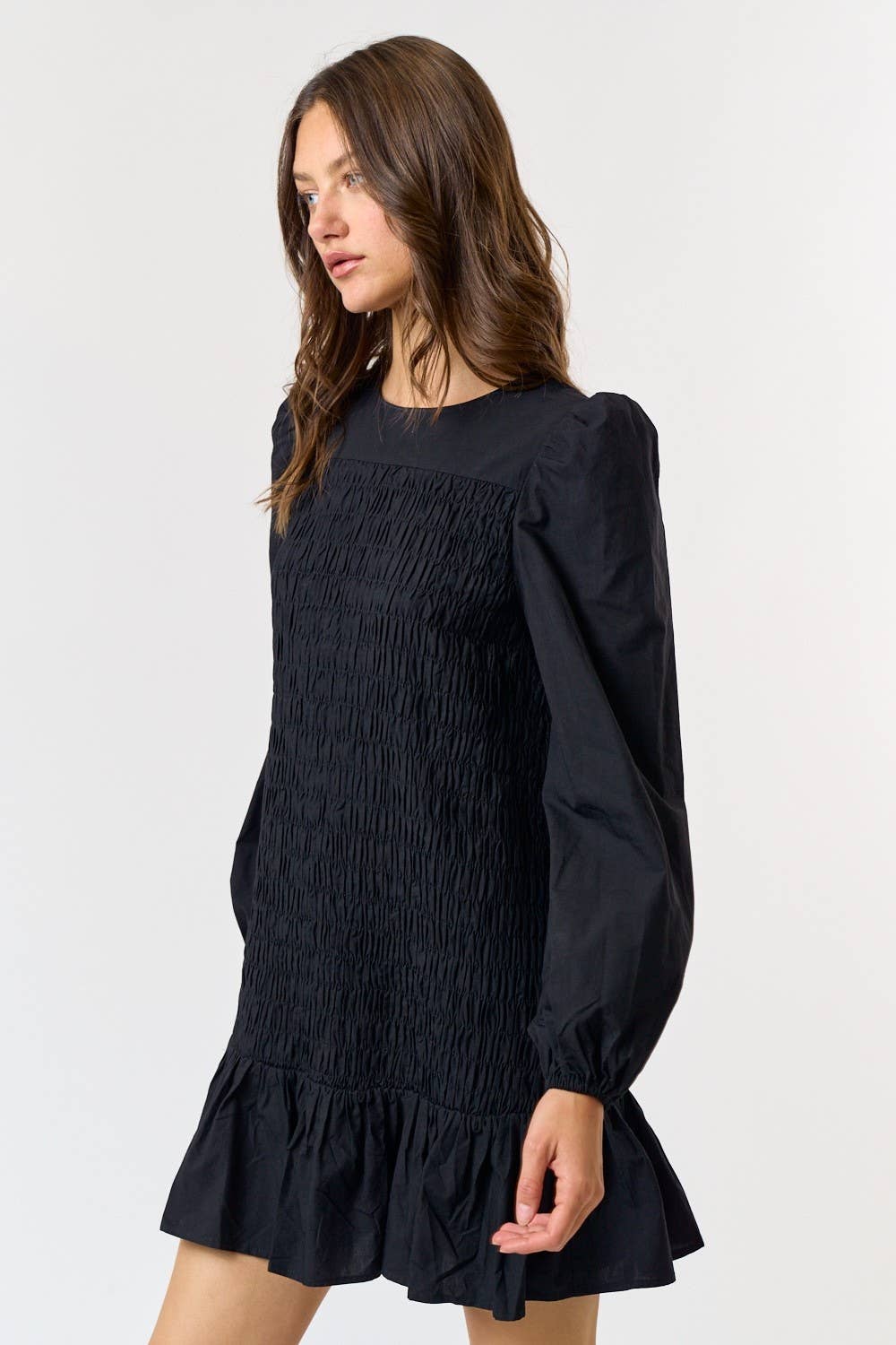 BUBBLE LONG SLEEVE COTTON PLEATED SKIRT DRESS -Round neck -Top (stretch fabric) Bottom (non-stretch fabric) -Pleated skirt -Over size dress SIZE PREPACK S/M-L/XL (3-3) 1X/2X (6)