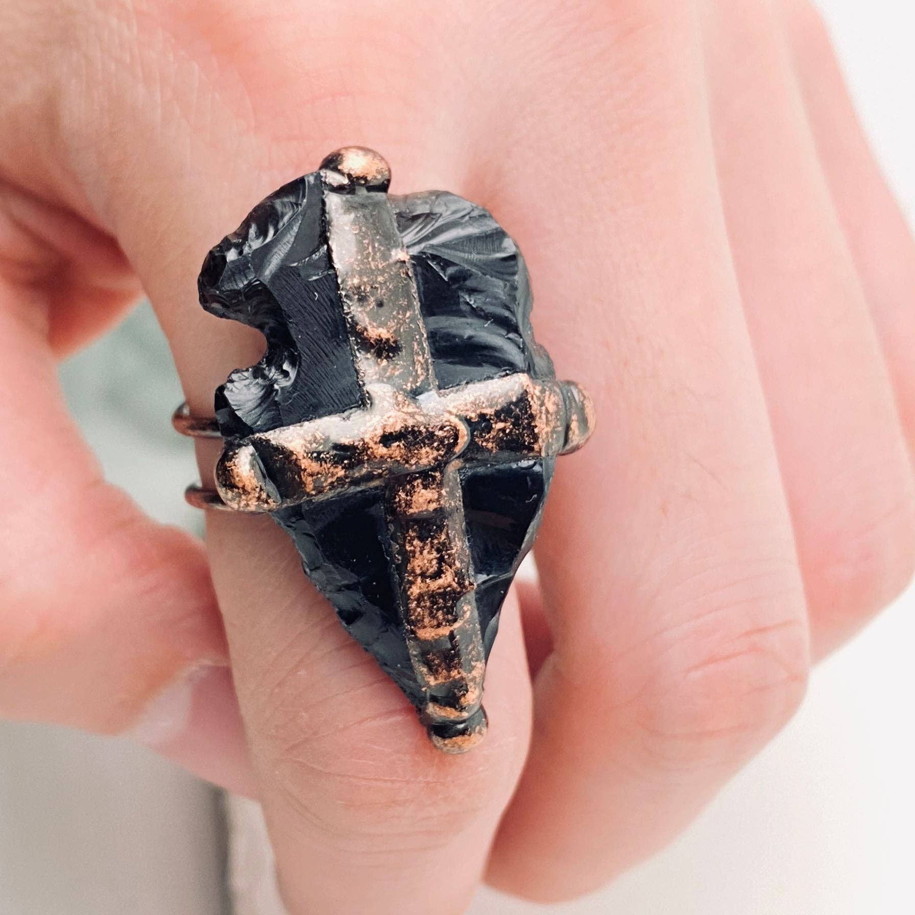 Natural Irregular Rough Stone Wound Copper Wire Ring