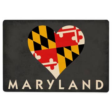 Letterpress printed and die cut Printed on both sides Size 4-1/2" x 8" Image Description: a letterpress and die cut postcard of the shape of the state of Maryland, in blue or red All images, products and designs © Noteworthy Paper & Press