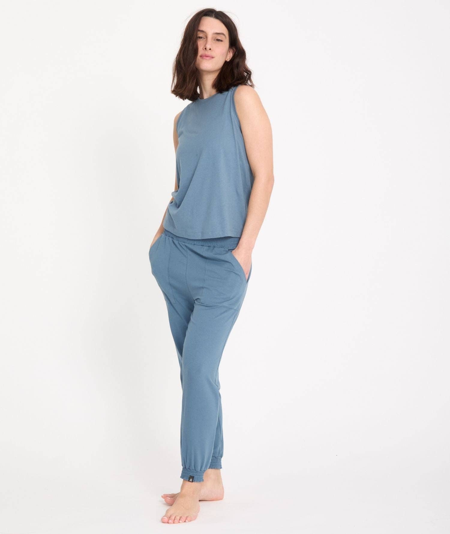 Fluid combination for yoga practice. 63% Lyocell 31% cotton 6% elastane