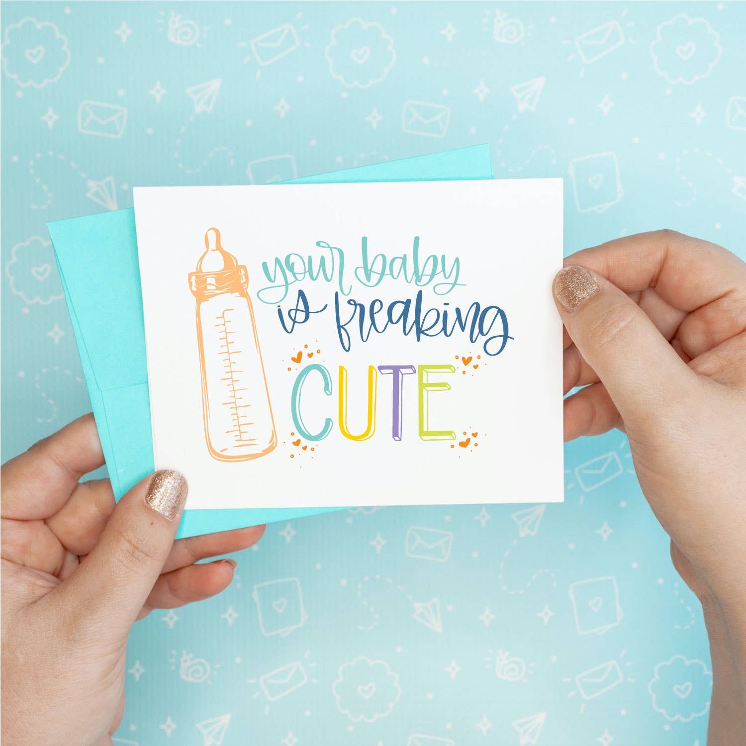 6 professionally printed blank inside greeting cards + envelopes. All of our cards are size A2 (about 4.25” x 5.5” in dimension) and designed, printed, packaged and shipped in-house from our Northern Kentucky/Cincinnati studio. We use eco-friendly paper and envelopes and do have the ability to ship without plastic packaging if requested. Otherwise, we package each card in a resealable cello bag. Themes: greeting card, snarky humor, funny card, card, hand lettering, calligraphy, snail mail, baby card, new baby, new parent, parents, new mom, hello, goodbye