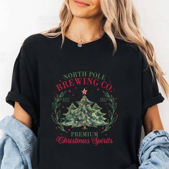 Whimsical holiday design featuring a jolly Santa with a beer, bright red and white colors, evokes festive cheer, perfect for party and celebration markets, festive, cheerful, Santa, holiday, beer, red, white, fun