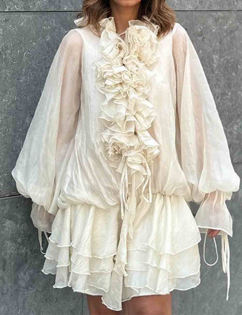 Ladies Solid Color Eyelets Ruffle Lace Blouse