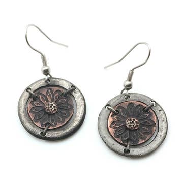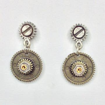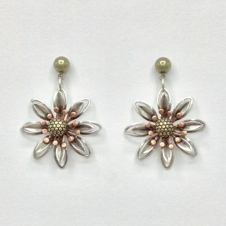 Alchemy Inc - Wholesale Dangle Earrings - Mechanical Botanical Mixed Metal Earrings - 3253