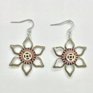 Wholesale Mechanical Botanical Mixed Metal Earrings - 3253