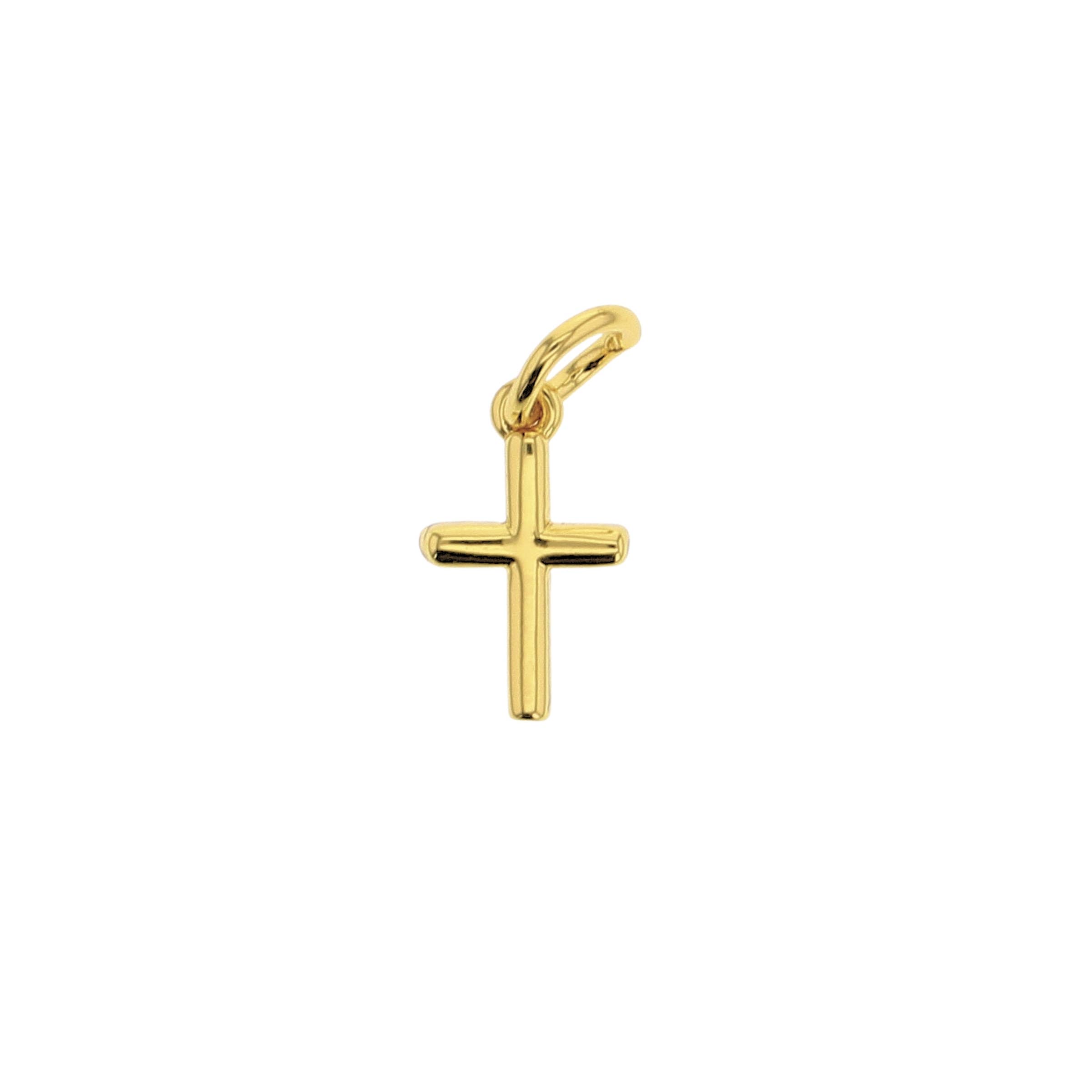A stunning and sentimental charm for your customers, our NEW Cross Charm with a heart makes a stunning addition to your chain necklaces and bracelets for those wanting to show off their religious faith! Made with our proprietary blend of surgical-grade 18K Gold PVD coated stainless steel designed for everyday wear, your customers have quality, style, and comfort to cherish for years to come! ✦ Waterproof, non-tarnish, hypoallergenic ✦ 18K Gold PVD coated 316L Stainless Steel ✦ Perfect for accenting necklaces and bracelets ✦ A must-have for charm bars! - PVD COATING - We use the process of PVD Coating our 18K Gold jewelry over 316L surgical grade stainless steel for a non-tarnish, hypoallergenic, polished finish that will hold up best to everyday wear and will never turn your customer's skin green. Charm Size: 12mm x 22mm Recommended Jump Ring Size: 20g - 22g Approx. Weight: 1.32 grams