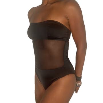 Sheer When-Wet Tan 1-PC The perfect all nude, sheer one piece! You will feel oh so daring in this suit. Simple but sexy, this one piece is great for the more care free woman. Slightly sheer when dry, fully sheer when wet. You will look totally amazing in the super sexy 1-PC. Scooped neckline Wide Straps Cross Back Crotch lining High cut legs Full rear coverage Tan Tricot Nylon/Lycra fabric Sizes: 4,6,8,10,12,14,16,18 #W106 Made For You in Our UjENA Factories.