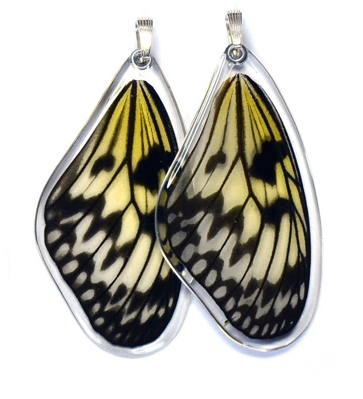 Real butterfly wing pendant, encased in resin using a proprietary process, on a sterling silver bail.