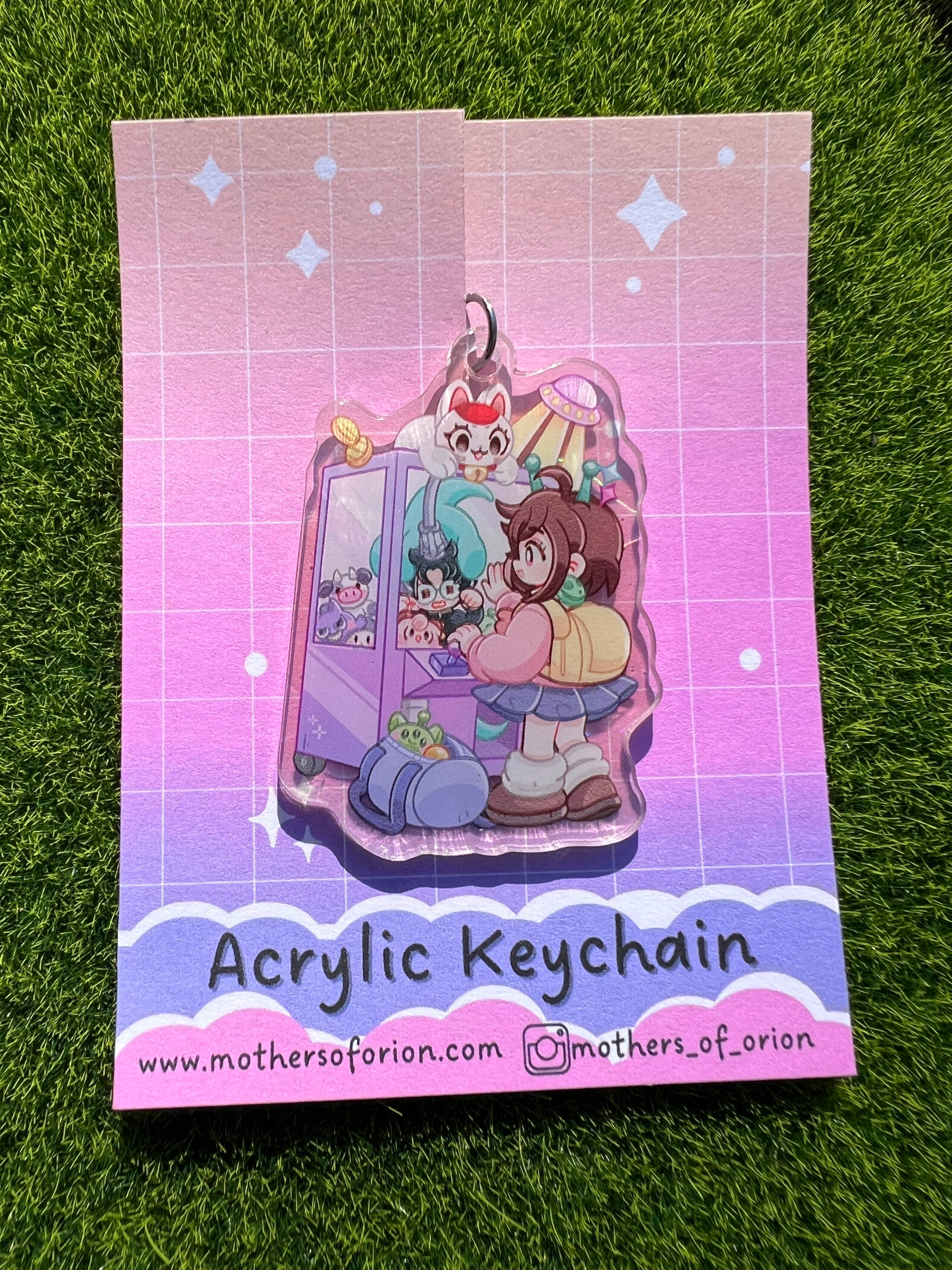 *Includes one clear acrylic keychain *Silver swivel lobster clasp *thick and durable *Double-sided graphic with single side heart holographic overlay *5cm acrylic ( at largest point of image) *Each keychain comes with a backing card and sealed in plastic hanging cello bag **please note that colors may vary from different screens