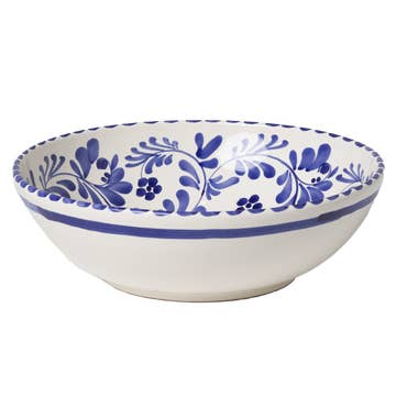 Our Heritage serving bowl in blue features a delicate blue chrysanthemum motif reminiscent of our founder’s Asian heritage. Whether you're enjoying feta and olive orzo or maple mashed sweet potatoes, this serving bowl from our Heritage series serves a beautiful chinoiserie pattern great for year round dining. Dimensions: 12" diameter x 4.5" height
