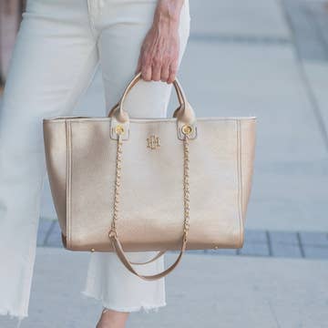 Made in United States Bag Size: Large Embellishment: Piping Fabric: Canvas Occasion Theme: Easter, Everyday, and Mother's Day Pattern: Solid Season: Resort Size: L Product Language: English Weight: 0.68 kg (1.5 lb) Dimensions: 38.1 x 30.5 x 7.6 cm (15 x 12 x 3 in) Product Materials: Plastic-free Packaging: Plastic-free, Recyclable, and Reduced