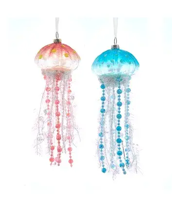 Our handmade ceramic jellyfish ornament features fun beaded tentacles and a ceramic form that looks like it's floating in the current. It reminds us to go with the flow. The jellyfish is approximately 3-4 inches long. Light weight and durable. Perfect addition to your tree, hostess gift, bridal gift or garland accessory!