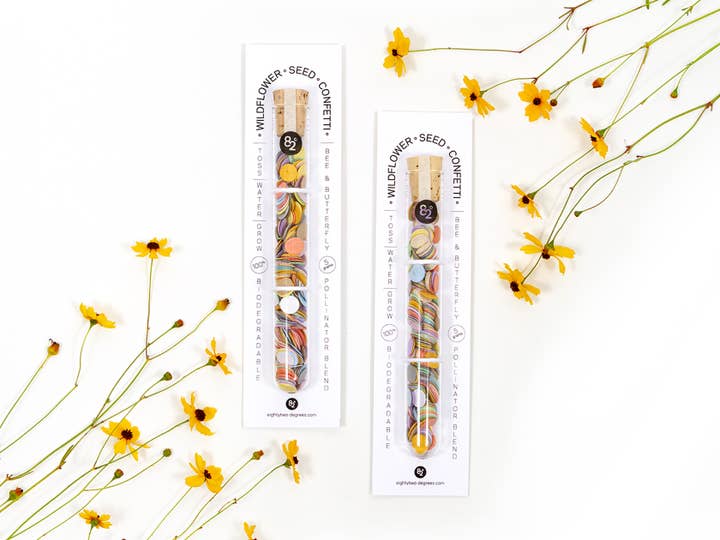 These individually packaged seed tab booklets are a fun and meaningful way to spread happiness—and wildflowers. They make the perfect party favor or gift for any occasion. Each booklet includes ten plantable tabs made from 100% biodegradable paper embedded with a mix of wildflower seeds. Every order includes two tab booklets. Feel good knowing you’re supporting the local ecosystem by planting pollinator-friendly flowers that help bees and butterflies thrive. Your purchase makes a positive impact on the environment! 🌸 🐝 Details: - 80lb plantable eco-paper tabs - booklet size 2.5" x 2" - ten different booklet colors available - 100% biodegradable paper made from post consumer waste - embedded with NON-GMO wildflower seed blend - made to order in USA - each order plants a tree through One Tree Planted