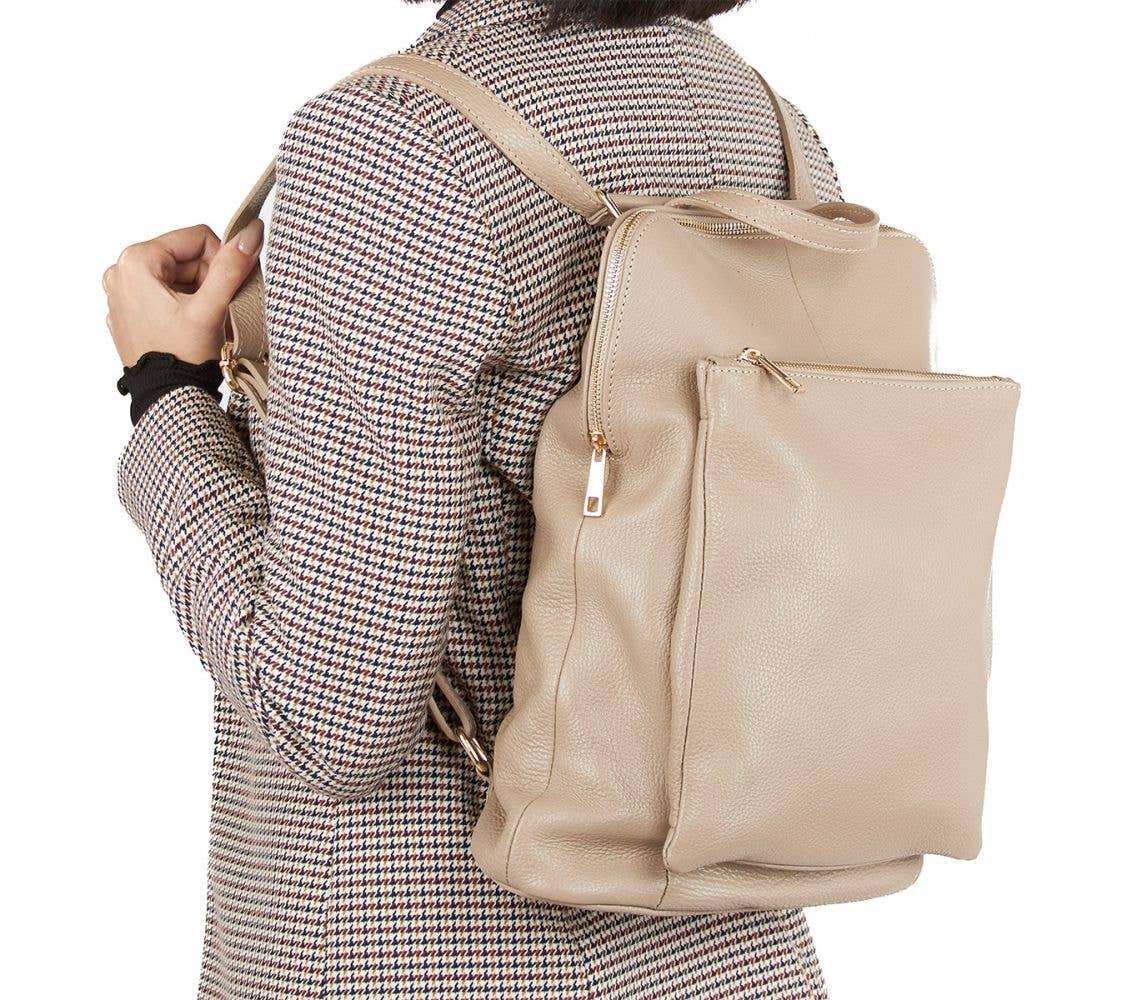The Daisy Convertible Backpack Purse – Effortless Style, Everyday Function Discover why The Daisy Convertible Backpack Purse is our best-selling favorite. This chic, multifunctional backpack purse transforms instantly from a stylish shoulder bag to a hands-free backpack — giving you the freedom to move through your day with ease. Crafted from premium pebbled vegan leather, Daisy offers a timeless look that complements any outfit, while its smart compartments and wide zip opening keep everything beautifully organized. The perfect balance of fashion and function, this vegan leather backpack purse is made for women who do it all — with style. Why You'll Love It * ✨ 2-in-1 convertible design – wear it as a backpack or shoulder bag * ✨ Wide accordion-style zip opening for easy access * ✨ Multiple compartments for organized, everyday storage * ✨ Durable pebbled vegan leather with elegant light-gold hardware * ✨ Protective metal feet to keep your bag looking flawless Materials & Dimensions * Outer: 100% Vegan Leather (Polyurethane) * Lining: 100% Polyester * Bag: 10.5L” x 4W” x 11.5H” * Convertible Strap Length: 14”