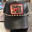 Feed Me Crawfish & Tell Me I'm Pretty embroidered patch trucker hat. Available on Vibes Glitter Ponytail Caps or a foam trucker! Our ponytail caps have a mesh back, ponytail back, and an adjustable velcro enclosure. Foam truckers have a foam front, mesh back, and adjustable snapback enclosure. Pair your trucker cap with one of our trucker hat chains for just the right touch. Chains not included but sold separately. Pictured here with our dainty pearl and white turquoise trucker hat chains.
