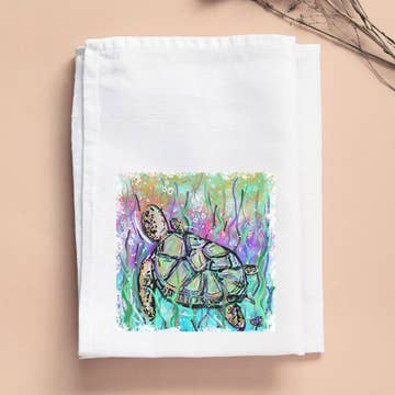 Whimsical illustrated green frog design on soft white flour sack cotton. A fun pick for nature boutiques, pond-themed gift shops, and novelty kitchen retailers. Details: - 100% cotton flour sack; pre-washed and lint-free kitchen linens - Absorbent medium-weight weave, T110 thread count; approx. 28" x 29" - Printed with eco-friendly inks; original artwork — hand illustrated - Made in the USA from Indian cotton fabric; softens with wash - Sold in case packs of 4 A home décor and kitchen & tabletop bestsellers item. Original artwork by Two Little Fruits. Strong Mother's Day and holiday gift sell-through. Minimum 2 per design.