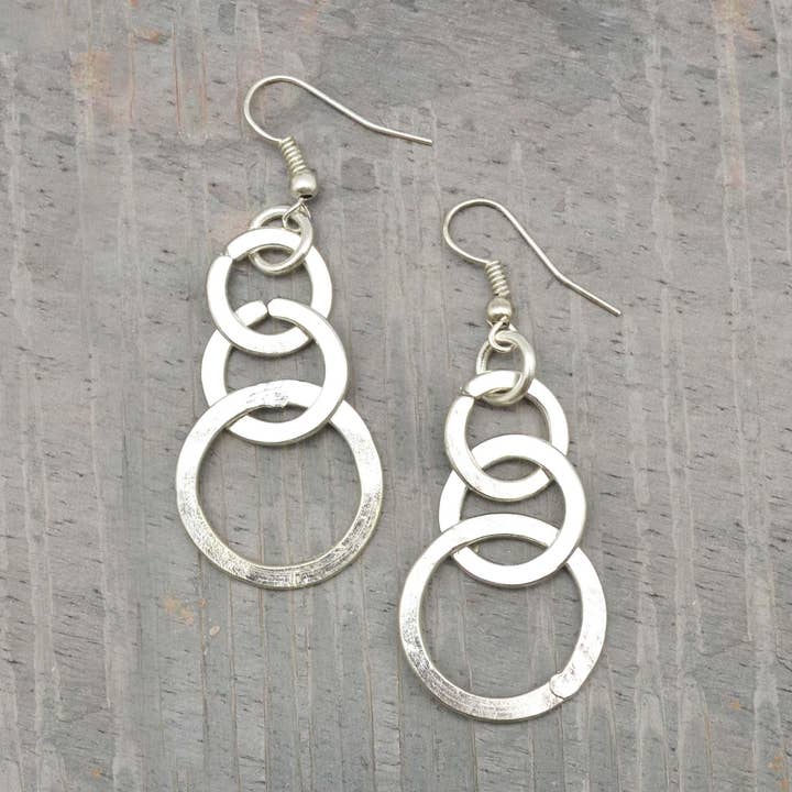 These earrings are a fantastic addition to any shop because they hit that sweet spot between high-end artisan quality and everyday wearability. They are meticulously handcrafted from silver plated brass and have a beautiful, fluid movement that really catches the eye. Why your customers will love them: Handcrafted Quality Each pair is made by skilled artisans using silver plated brass. You can really see the hand-finished detail in the layered rings. Easy Style Transition They work just as well for a "casual chic" coffee date as they do for a glammed up night out. That versatility makes them an easy sell for your customers. Skin Friendly and Safe We keep the quality high by ensuring all ear wires are completely lead and cadmium free. It’s one less thing for you or your shoppers to worry about. Great Shelf Appeal The way these rings catch the light makes them perfect for your display cases or for showing off on your shop's Instagram. Material: Silver plated brass Process: Artisan handcrafted Safety: Lead and cadmium free ear wires Style: Layered rings with high light reflection