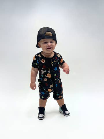 The perfect outfit for comfort. These feature our signature double zippers, making wardrobe changes and diaper changes a breeze. Pair that with our ultra-soft bamboo fabric and one-of-a-kind prints and you've got a new staple in your baby's wardrobe. Equipped with fold over the footies and mittens to convert from a romper to a footie in seconds. Convertible Romper Details: * 95% Bamboo Viscose - 5% Spandex * 24/7 Style * Double Zippers * Fold-over mittens * Fold-over foot cuffs to convert from footless romper to footed sleeper * No snaps, buttons, or interior tags