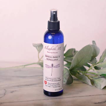 Ruin the meal for hungry bugs. This light spray repels biting critters without chemicals or DEET and smells great. Safe for ages 3+. INGREDIENTS: Aloe vera juice, witch hazel, non-GMO soybean oil, vegetable glycerin, essential oils: lemon eucalyptus, cedarwood, geranium, litsea cubeba, spearmint, vanilla.