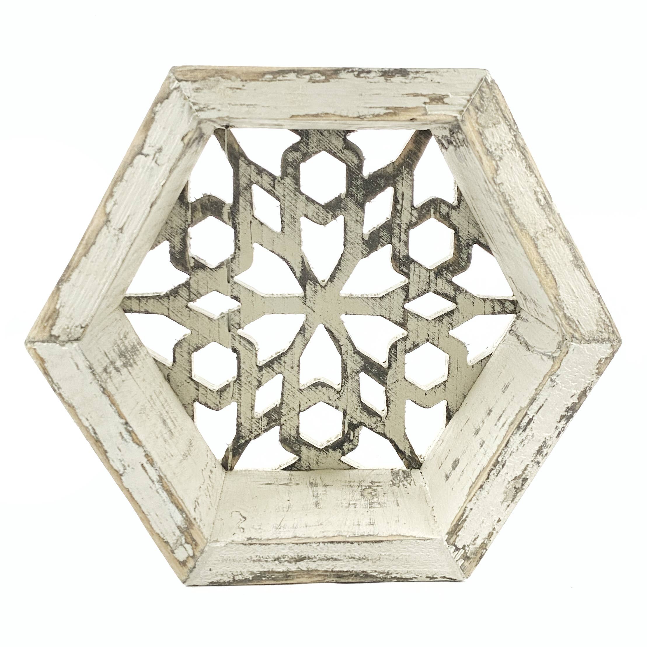These unique floating shelf perfectly combine wall art with functional use. Great for showing off small houseplants or whatever fits your fancy. Unlike other honeycomb/hexagon shelves on the market, ours feature unique and intricate designs on the back that require hours of machining to get just right, but that's what you deserve. Pictures show how these shelves nest conveniently for shipping with our regular sized honeycomb shelves. 9.75" wide 8.5" tall 4" deep (3.5" of shelf depth)