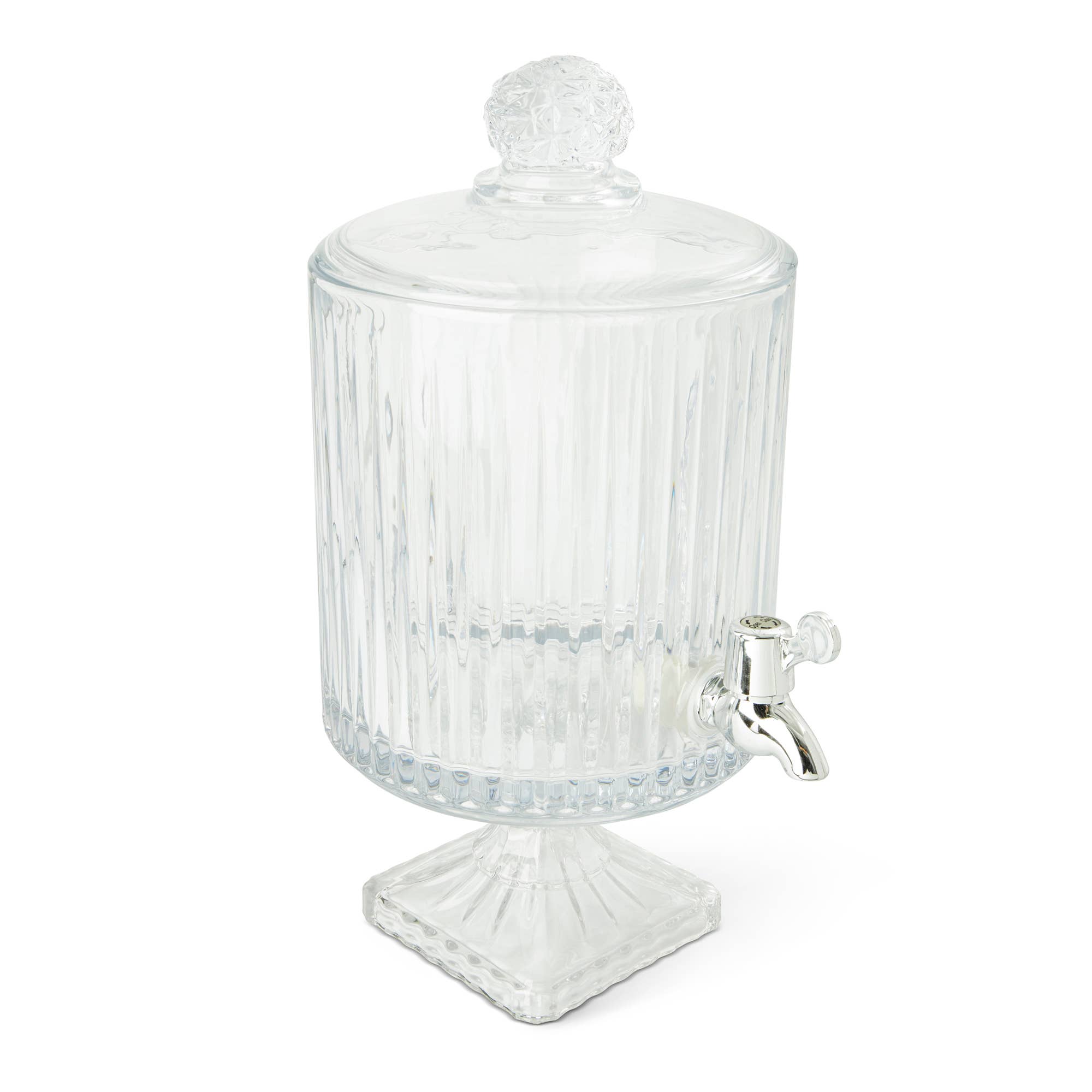 It's sleek, it's sturdy, and it's about to be your summer savior. Fill it up with lemonade for the kids outside, or sangria for the adults...inside. This classy glass dispenser is leak-free, designed with a stainless steel spigot, and lightweight for easy handling. Capacity: 1 gallon Num in Set: 1 Freezer Safe Material: Glass 5.8 W x 5.8 D x 10 H Perfect Condition Guarantee