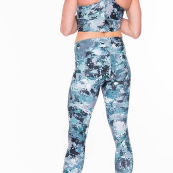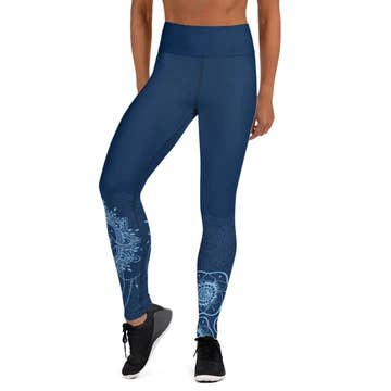 Super soft, stretchy and comfortable yoga leggings. 82% polyester/18% spandex. The material has a four-way stretch, the fabric stretches and recovers on the cross and lengthwise grains. Made with a smooth, comfortable microfiber yarn. Raised waistband. Precision cut and hand sewed after printing.