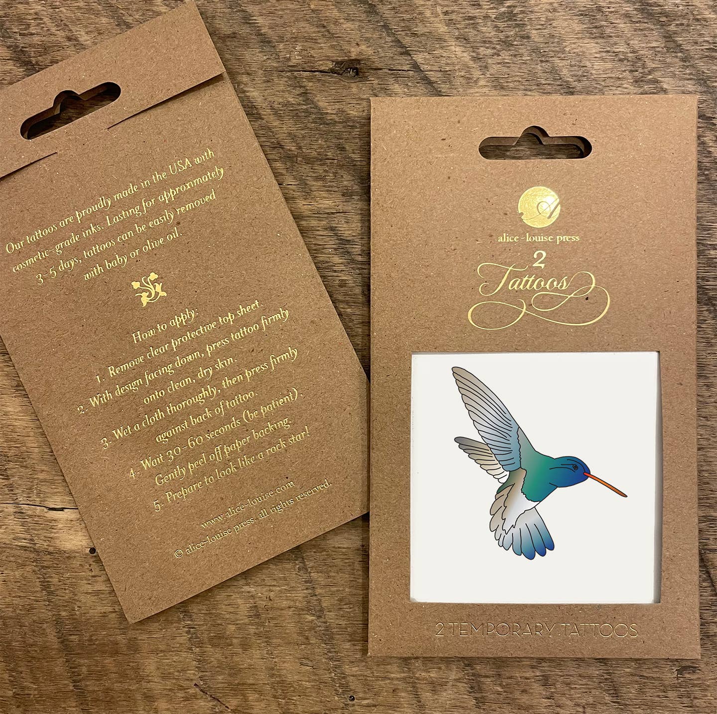 At Litographs, we create art from books. Each temporary tattoo pack includes six tattoos, featuring illustrations and quotes from a classic book. Litographs temporary tattoos are designed to be realistic, both in terms of their artwork and the way they look once applied. Each tattoo is one of three sizes: 3" x 3", 2" x 3", or 1" x 4". They last 1-3 days, and are easily applied using a wet cloth. Any order of 30 packs or more qualifies for a free countertop display (13 ¼” wide x 12 ⅛” deep x 16 ⅜” tall). Orders are batched on Sunday mornings and fulfilled the following week. Please feel free to message us with any questions.