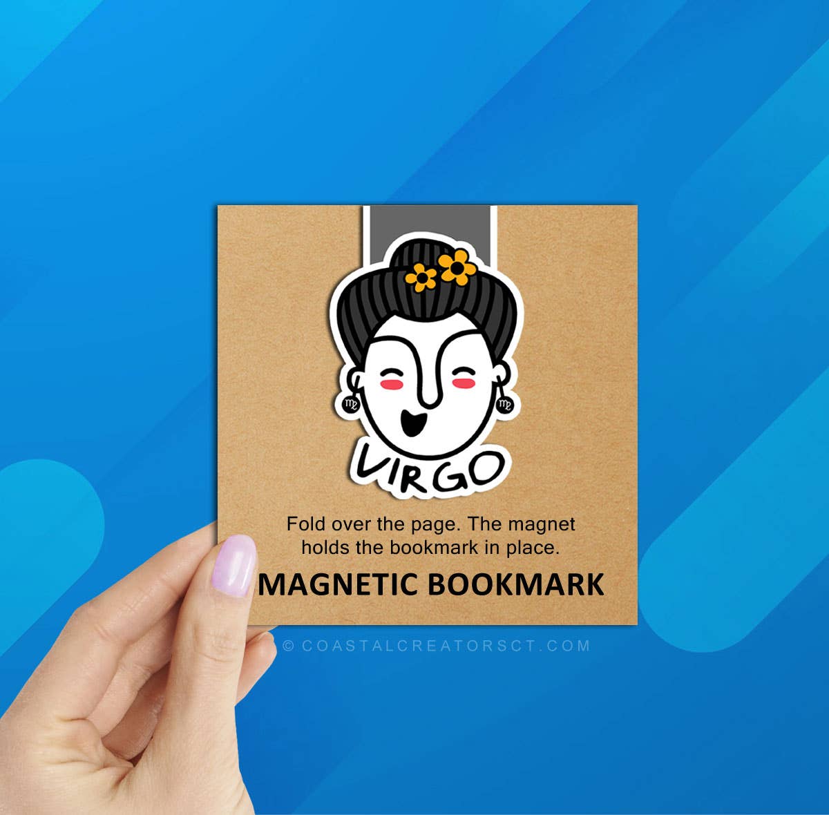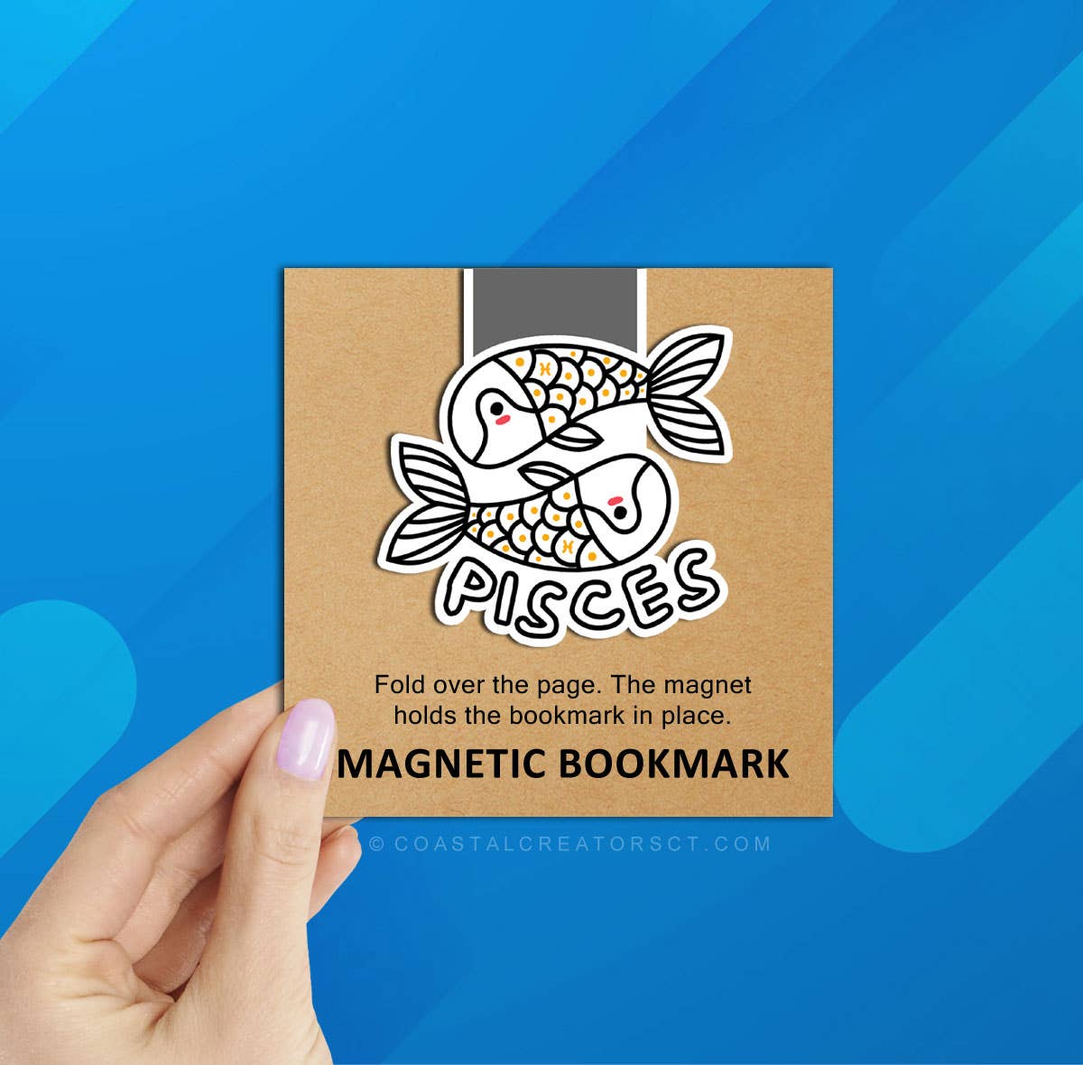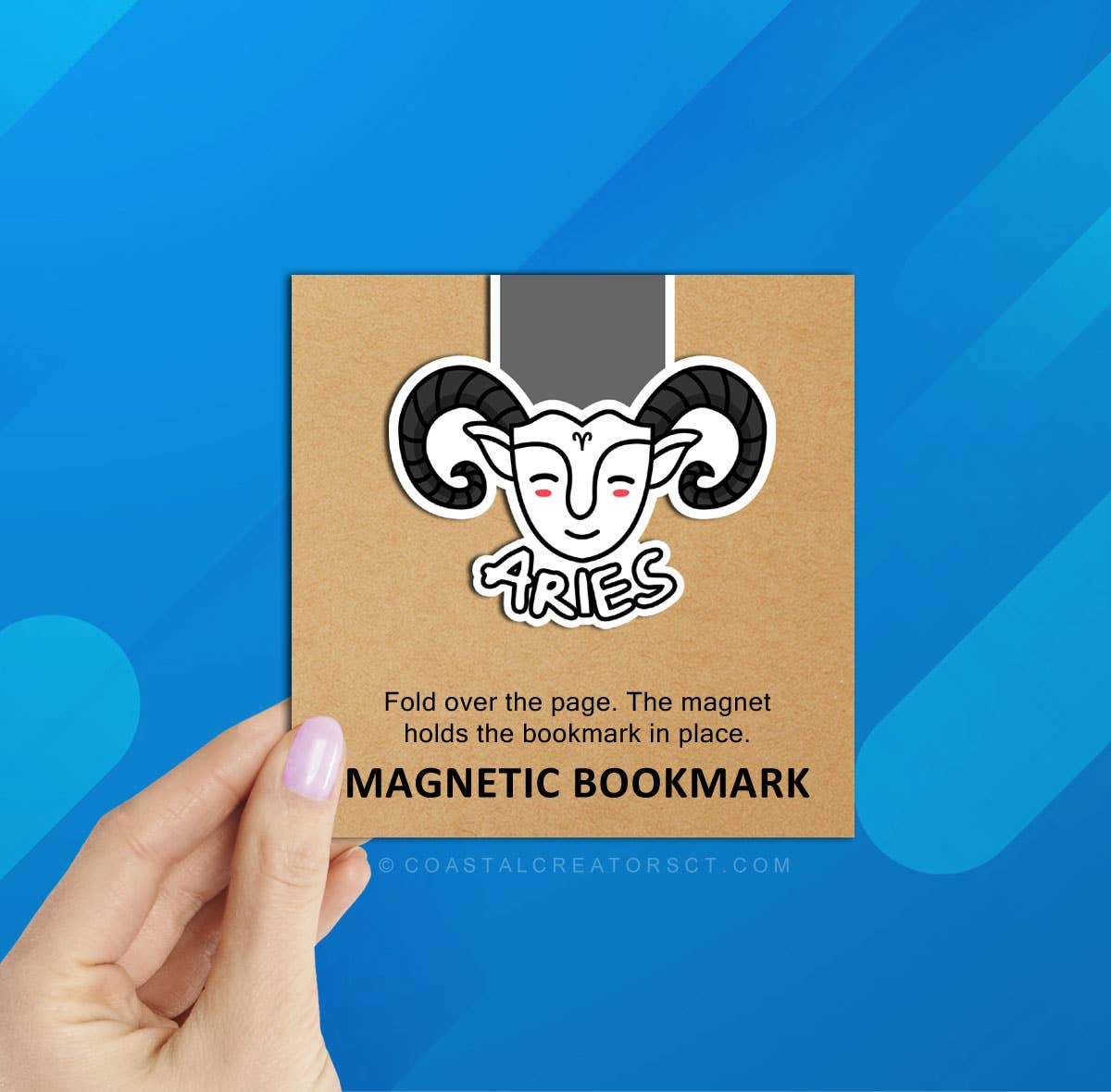 Magnetic bookmarks help you hold your place in your favorite novel, textbook, cookbook, planner and more. Each bookmark is individually packaged in clear plastic. Bookmark Dimensions: 2-1/2" wide x 5" high, folded 2-3/4" Packaging Dimensions: 4-1/4" wide x 4-1/4" high A magnet is attached to each side on the inside of the bookmark to keep the bookmark secure in the book. We print our magnetic bookmarks using Premium Photo Paper and laminate for extra protection. Your zodiac sign is based on the date of your birth. Here are the dates for each sign: Aries: March 21–April 19 Taurus: April 20–May 20 Gemini: May 21–June 20 Cancer: June 21–July 22 Leo: July 23–August 22 Virgo: August 23–September 22 Libra: September 23–October 22 Scorpio: October 23–November 21 Sagittarius: November 22–December 21 Capricorn: December 22–January 19 Aquarius: January 20–February 18 Pisces: February 19–March 20