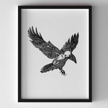 Crow Skeleton Wall Art - 8x10, 5x7 Print