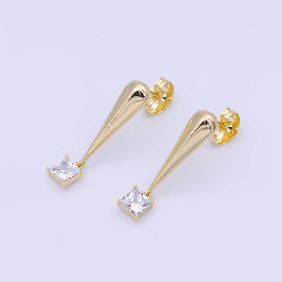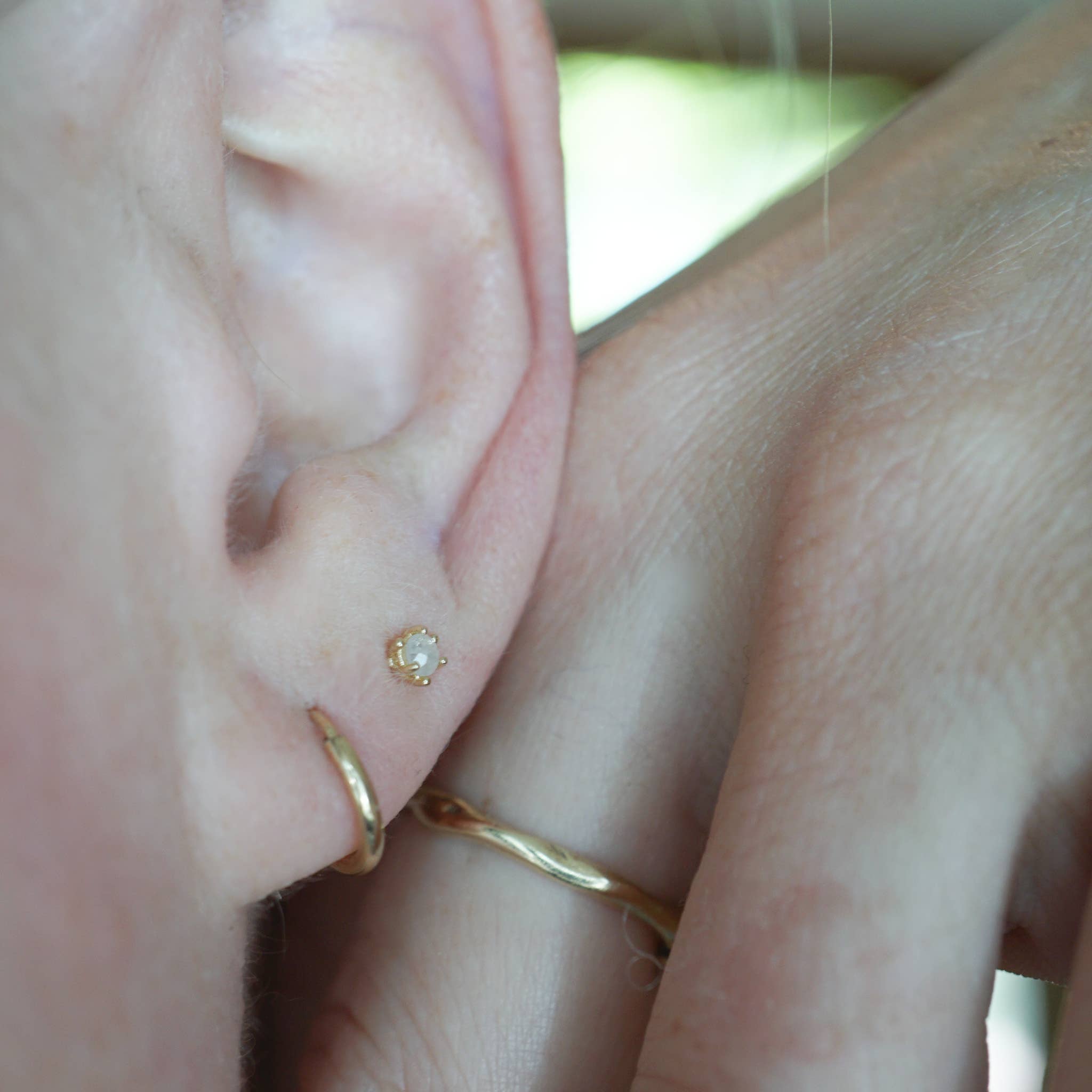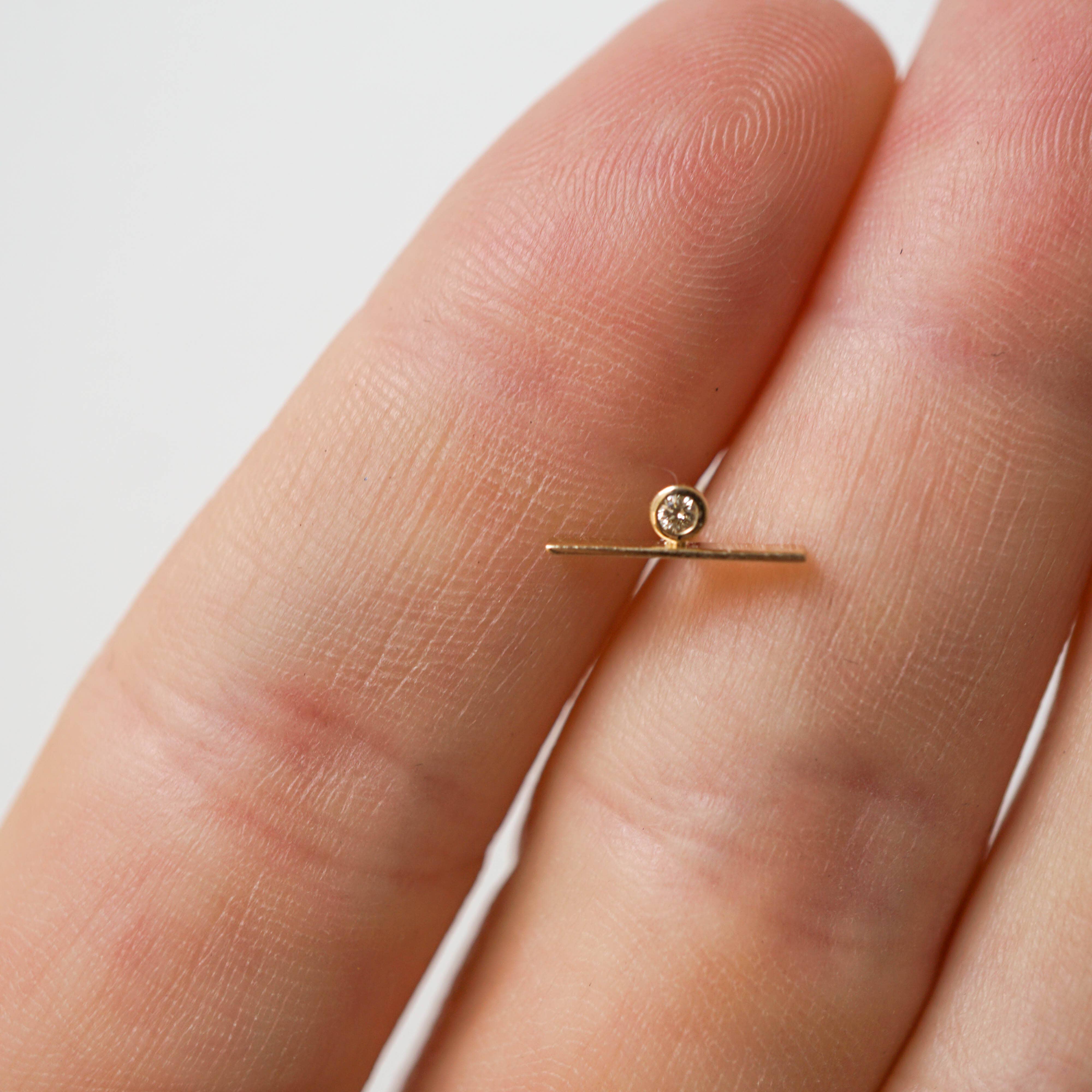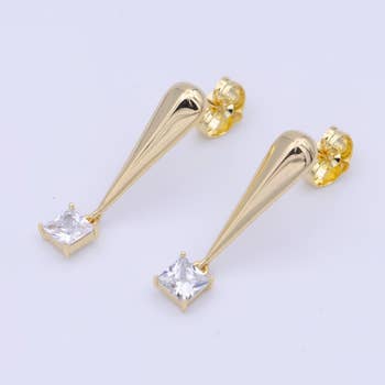 Genuine Sapphire or Emerald delicate chain earring. Setting in 14kt gold with gold-filled chain and earring post. Details: .5" gold filled chain drop, Stone: 2mm AA Sapphire or AA Indian Emerald.