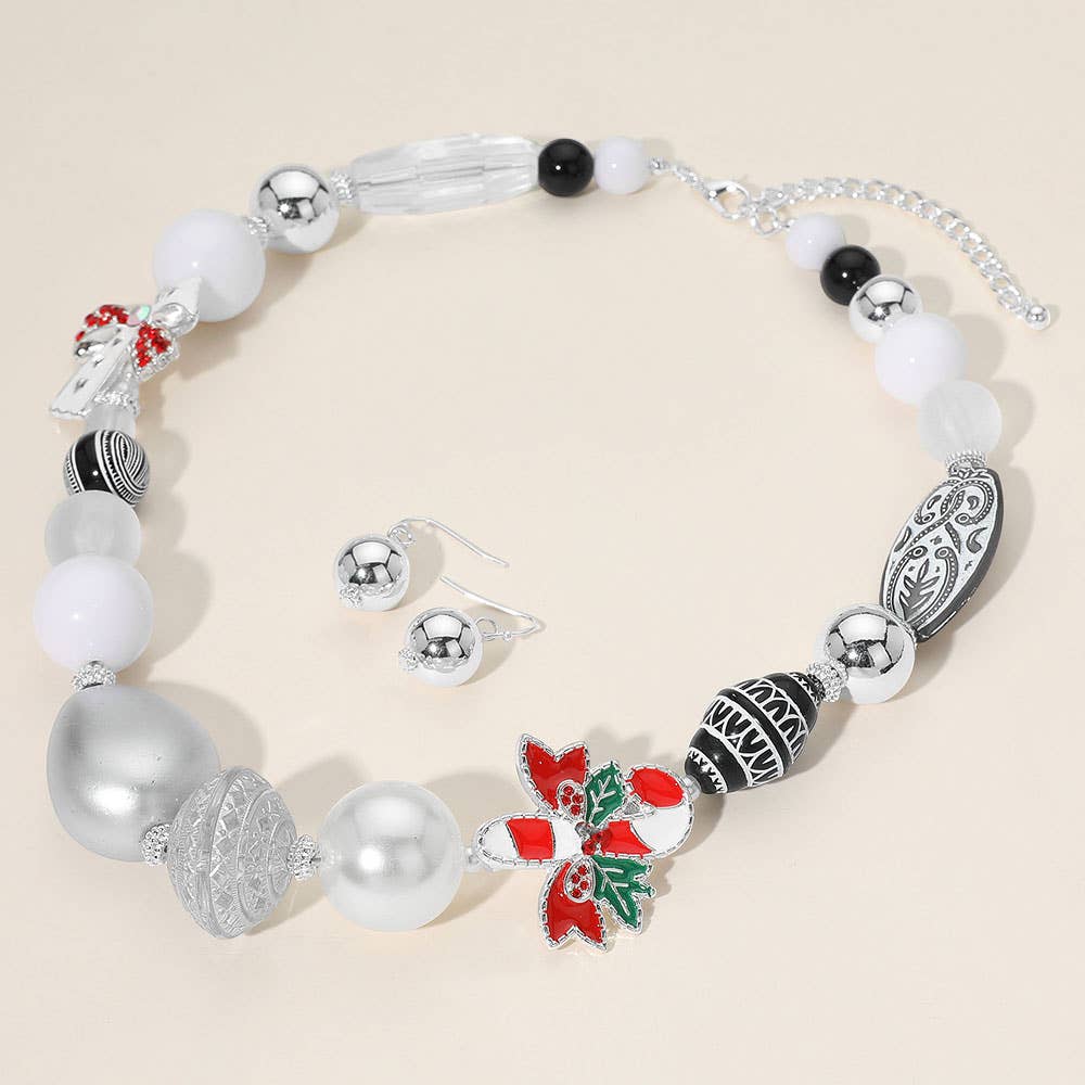 Wholesale Holiday Santa Gingerbread Man Candy Cane Pearl Bow Charm Beaded Necklace