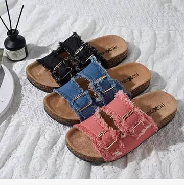 Looking for that perfect "goes with everything" summer staple? Meet your new favorite pair. These sandals expertly blend the rugged, timeless appeal of denim with a sophisticated silhouette, making them the ultimate versatile addition to your wardrobe. Effortless Style: Featuring a dual-strap design with raw-edge denim detailing and contrast stitching, these sandals offer a chic, "cool-girl" aesthetic that works for brunch, the office, or date night. Walk-All-Day Comfort: Ditch the painful stilettos. The sturdy block heel provides generous stability and height without the foot fatigue. Adjustable Fit: The tan leather-look slingback strap isn’t just a stylish contrast—it features a gold-tone buckle to ensure a secure, custom fit every time you slip them on. Denim upper 2.25" Covered heel Adjustable buckle closure Open toe 6 - 10 US Made in Brazil