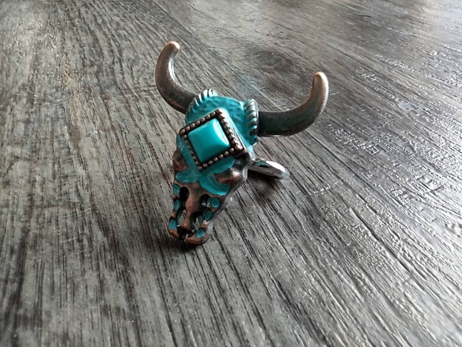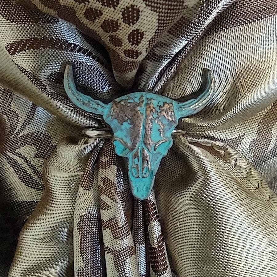 Concho Turquoise and copper Longhorn wild rag scarf slide