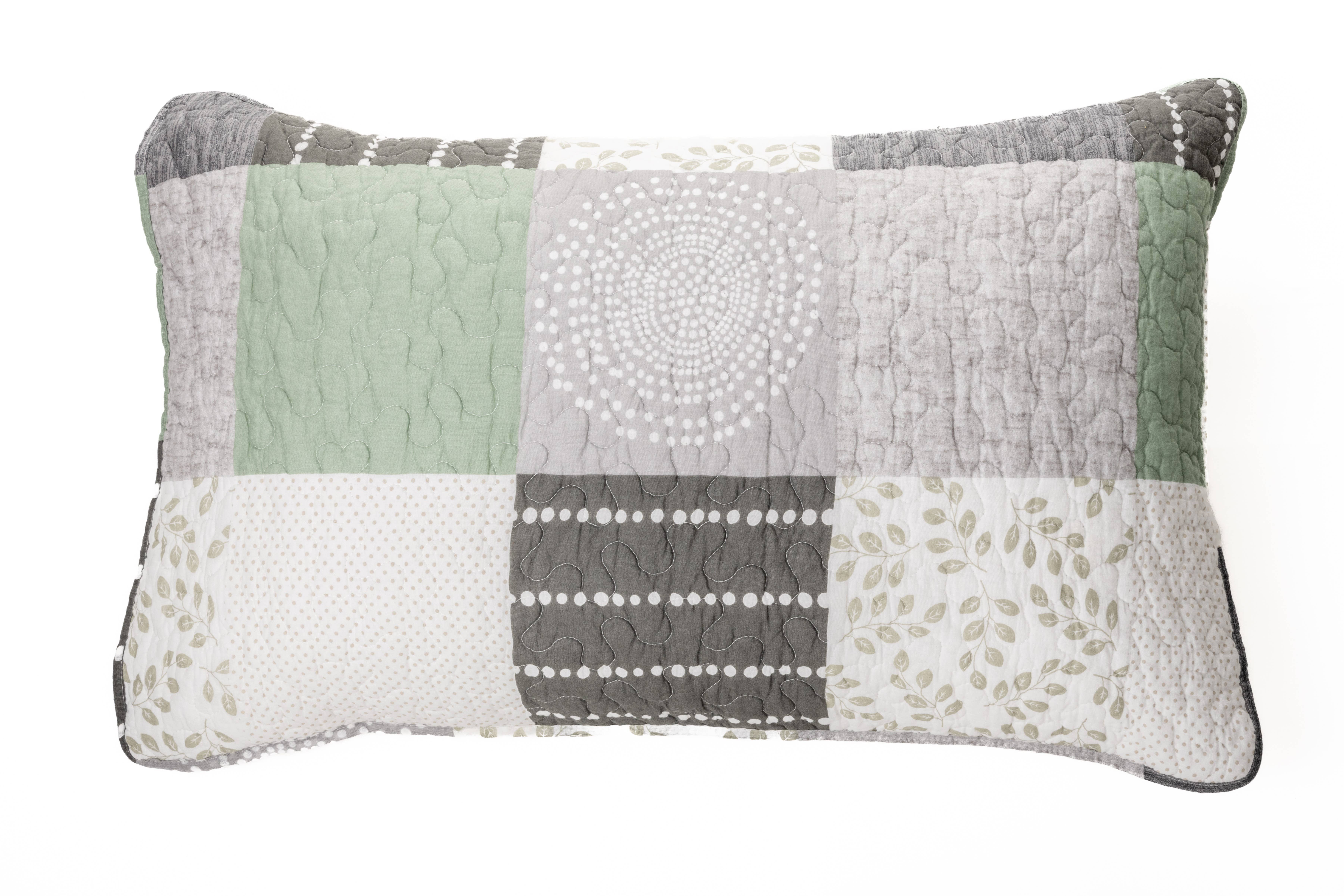 Authentic patchwork pillow sham in shades of taupe, natural and cream Queen size pillow sham: 20" x 30" King size pillow sham: 20" x 36" Filler sold separately 100% cotton Machine washable and dryable