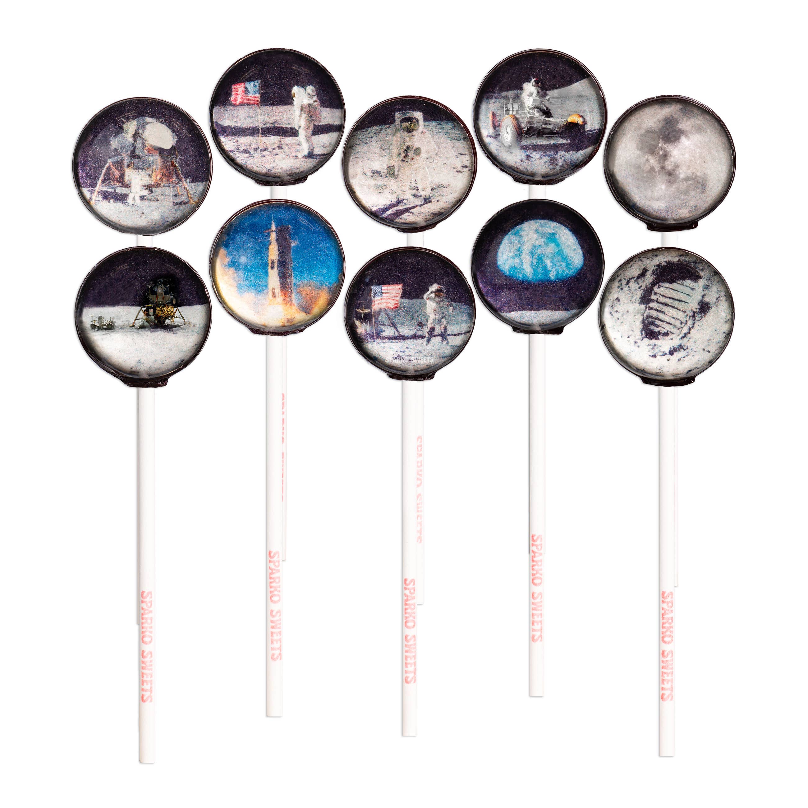 This Galaxy Lollipop Planet Design displays the beauty of our solar system in each delicious space lollipop candy. Designs include the Sun, Mercury, Venus, Earth, Mars, Jupiter, Saturn, Uranus, Neptune, and Pluto (dwarf Planet). • Handcrafted in Los Angeles, California, USA. • Diameters: Lollipop Sphere: 1.26 inches, Length: 5 inches • Individually wrapped in eco-friendly clear cellophane.